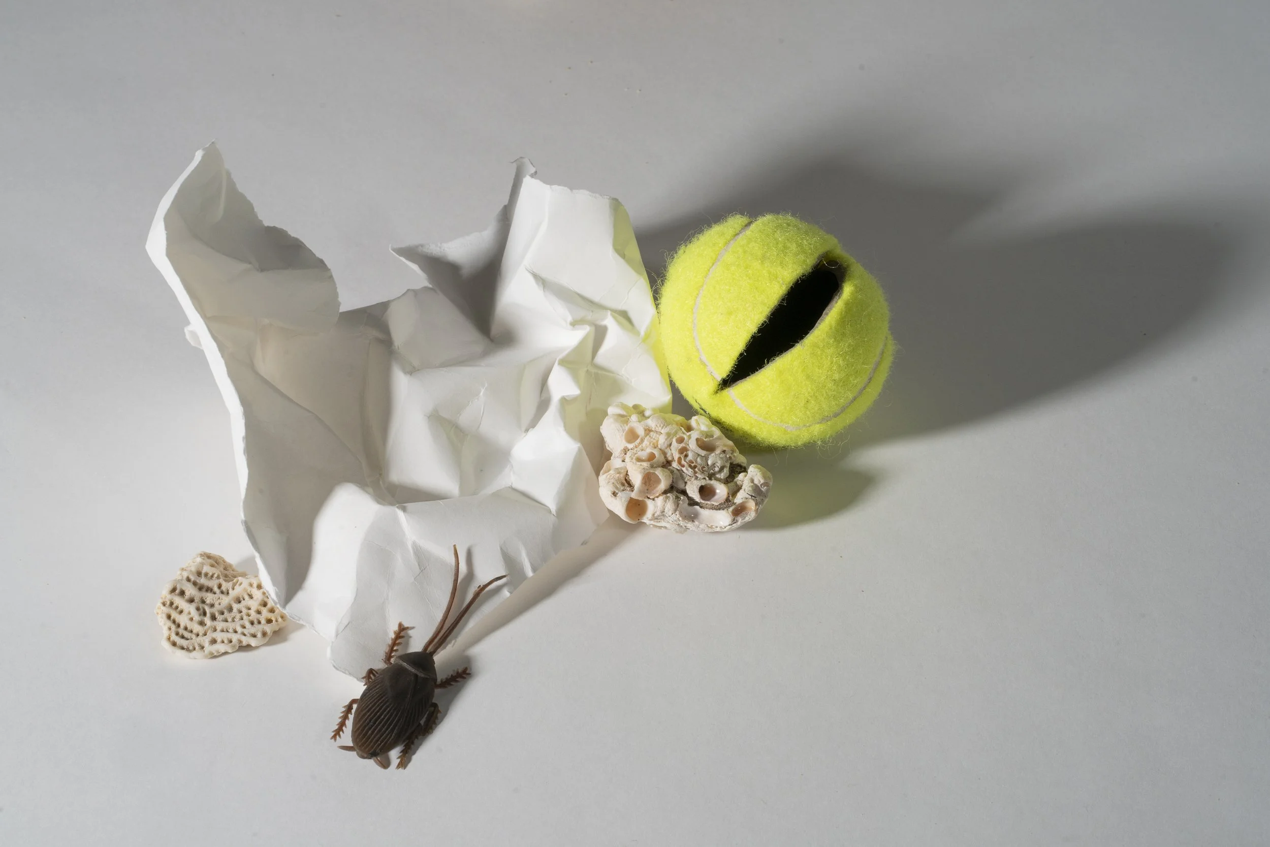 This still life gathers fragments of my own memories : a teddy bear, a small television, biscuits, scattered chocolate, crumpled paper, wooden blocks, and a half-cut tennis ball. A cockroach crawls through the scene, unsettling the quiet nostalgia. Drawing from the tradition of Dutch and Flemish still-life painting, I used familiar objects as carriers of layered meaning. Childhood comfort meets quiet decay; innocence is interrupted by impermanence. The scattered composition reflects the tension between presence and absence, turning everyday objects into a contemporary vanitas, a meditation on memory, solitude, and the traces we leave behind.